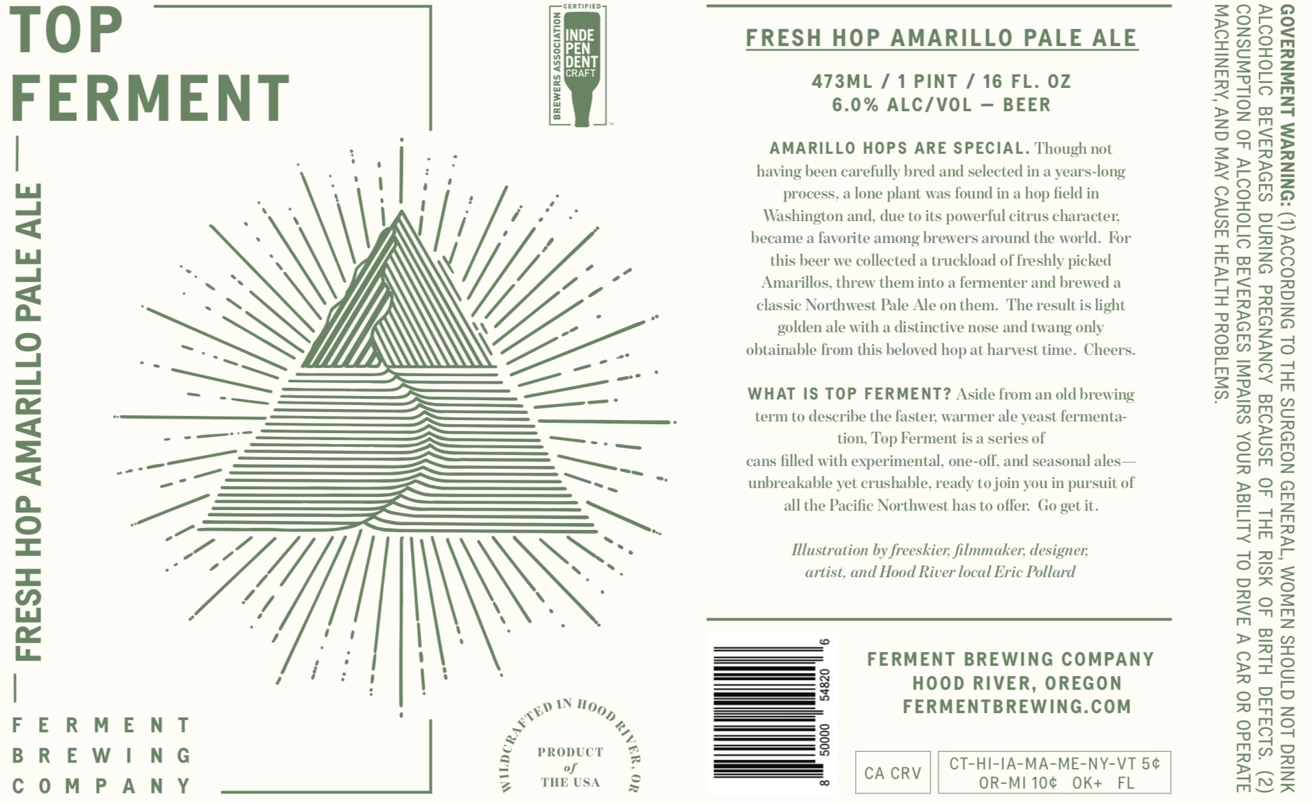 Fresh Hop Strata IPA started as an actively fermenting hazy IPA, which was then racked onto hundreds of pounds of fresh Indie Hops Strata gathered from Coleman Farms. The yeast worked to tease out aromatics and a terpene zing that can only be found in a beer this time of year. Final ABV is 6.5%. Ferment Brewing is proud to have brewed this as a collaboration with New Seasons Market.